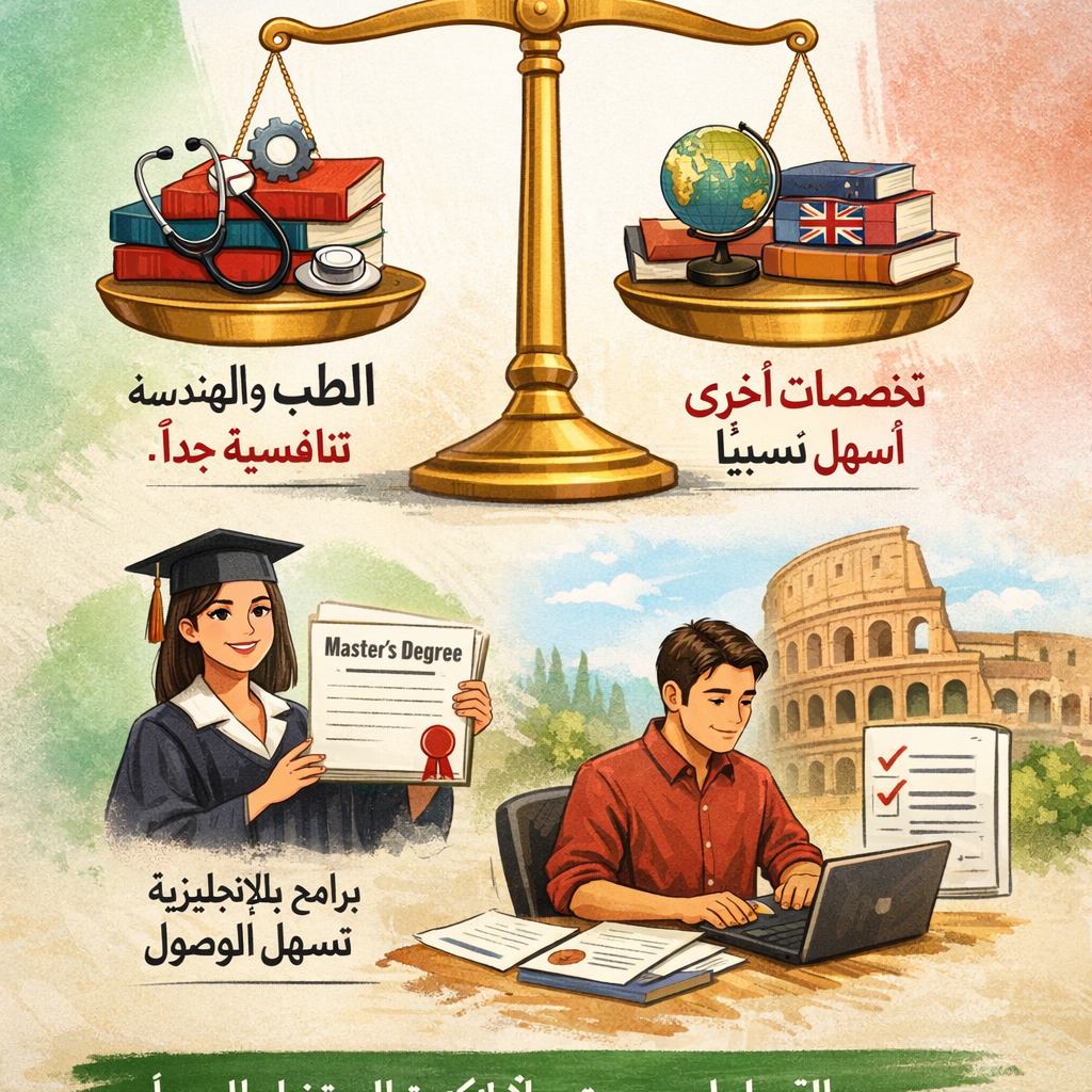 هل القبول في الجامعات الإيطالية صعب؟ by admin مرايا فكرية يختلف مستوى صعوبة القبول حسب التخصص:تخصصات مثل الطب والهندسة: تنافسية جدًاتخصصات أخرى: أسهل نسبيًاكما أن توفر برامج باللغة الإنجليزية يسهل على الطلبة الدوليين الولوج، خاصة في الماجستير.بشكل عام، القبول ليس مستحيلاً لكنه يتطلب ملفًا جيدًا وتحضيرًا مبكرًا.